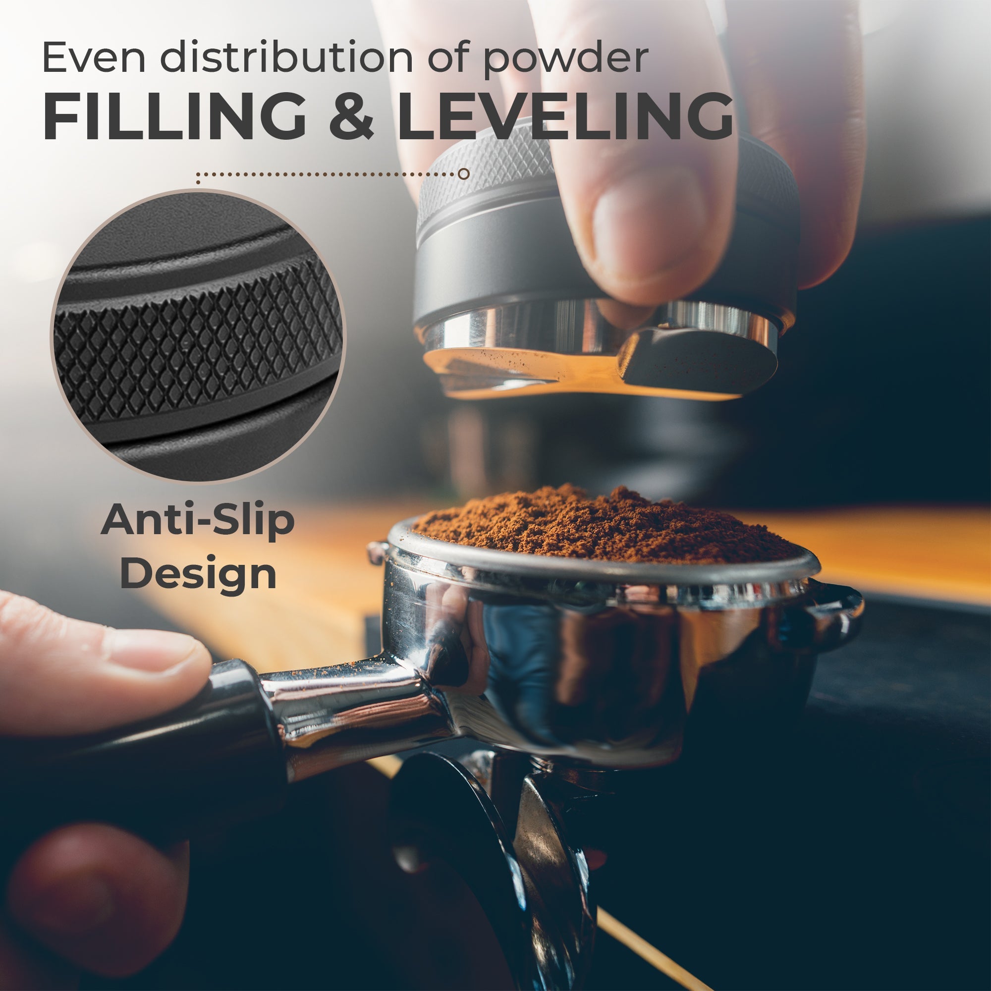 EASY USE - Stir the coffee grounds while they sit in the portafilter. A funnel placed above the portafilter helps prevent spills. The stirring action breaks up any clumps, and evens out the density of coffee within the puck which results in reduced channelling, and higher, more even extractions.