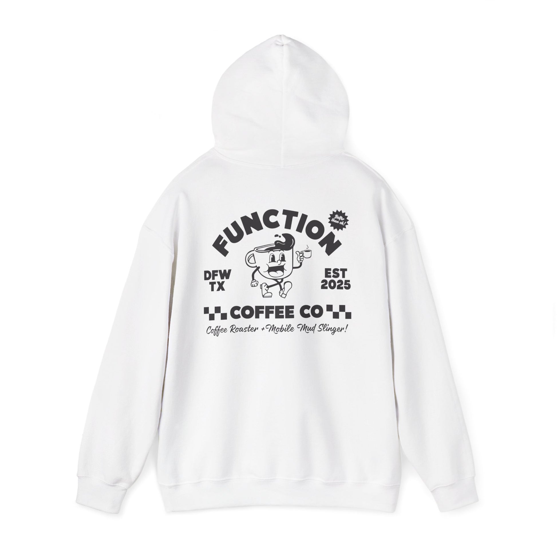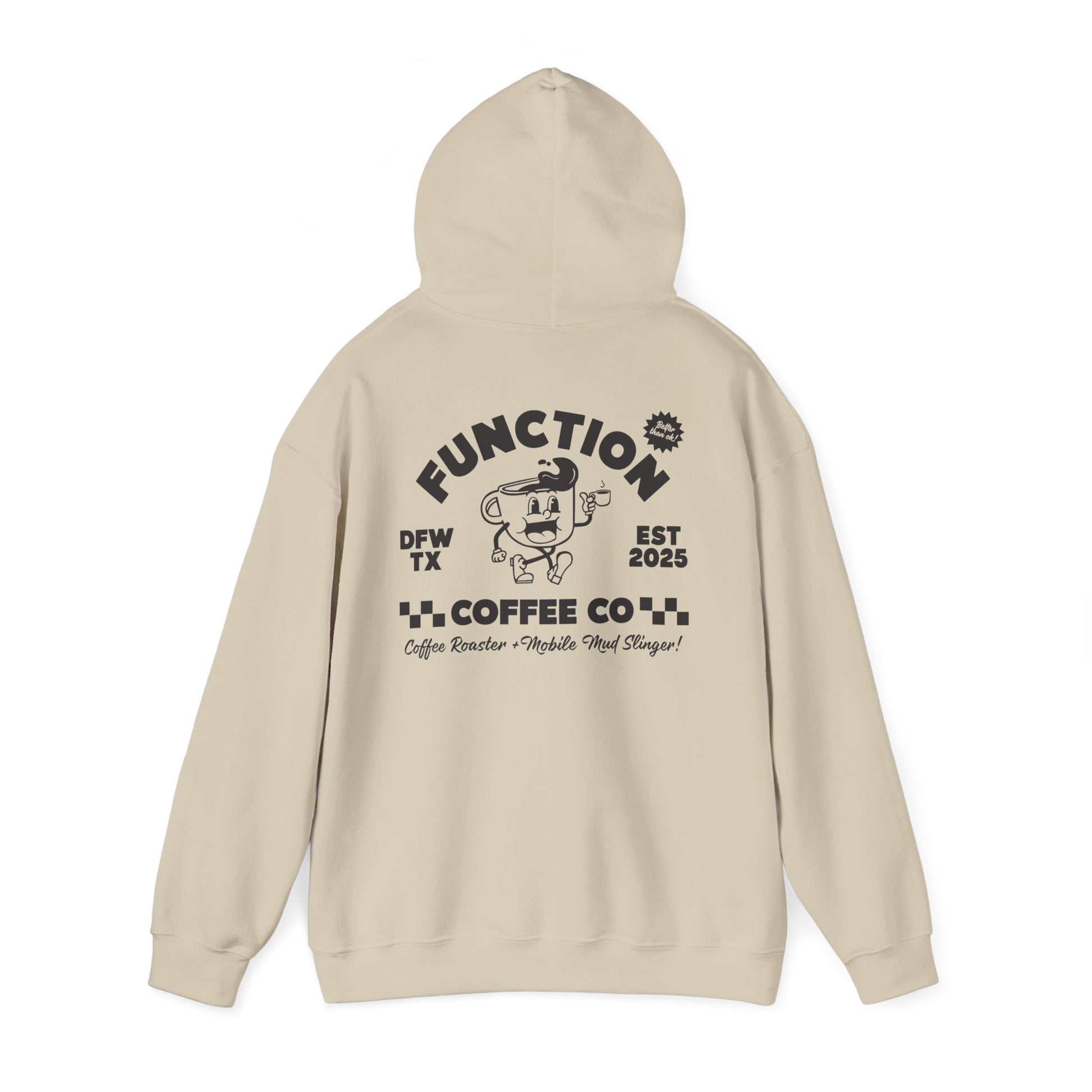 Vintage vibes, modern comfort. Small Function Coffee Co. logo on the front, full retro Funky ‘coffee roaster and mobile mud slinger’ design on the back. Soft, warm, and built for coffee runs, lazy days, and everything in between.