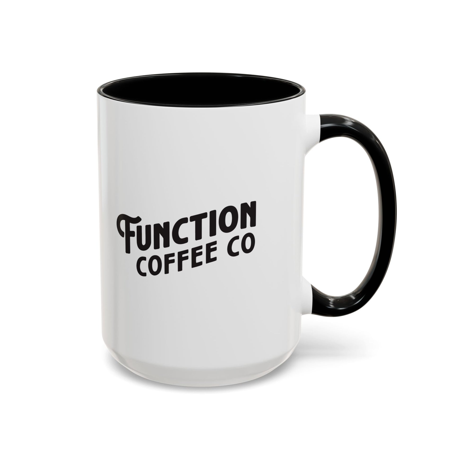 This ceramic mug features our coffee-loving mascot alongside the Function Coffee Co. logo, plus a black or pink handle and rim for that signature brand flair. Perfect for sipping in style.