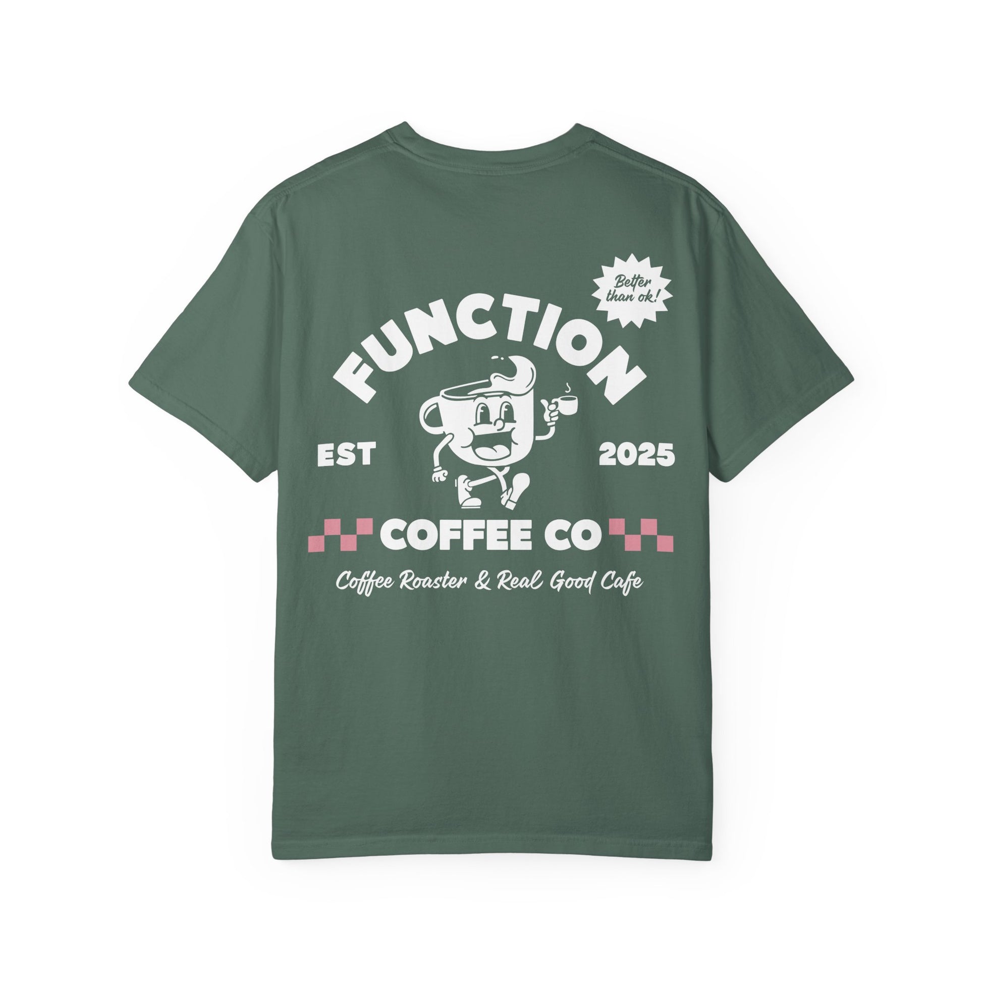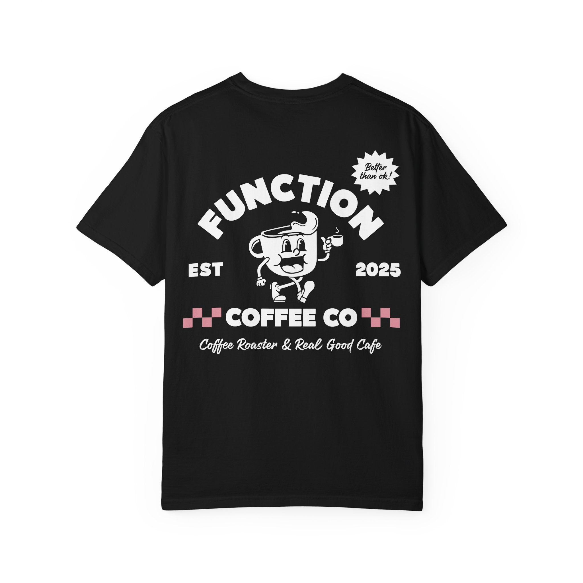 Old-school vibes, new-school coffee. This vintage-inspired tee features a small Function Coffee Co. logo on the front left chest and a full back design of Funky, our "Coffee Roaster and Real Good Cafe" vintage desgin on the back.